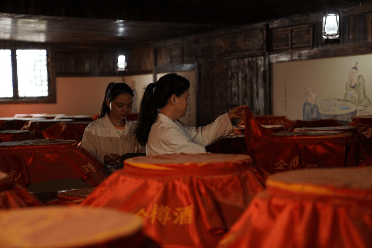 金樽酒厂的盘勾勾兑遵循的是以酒勾酒,即不加水勾兑,通常是将不同轮次的基酒、不同典型体的酒和不同年份的基酒进行勾兑。